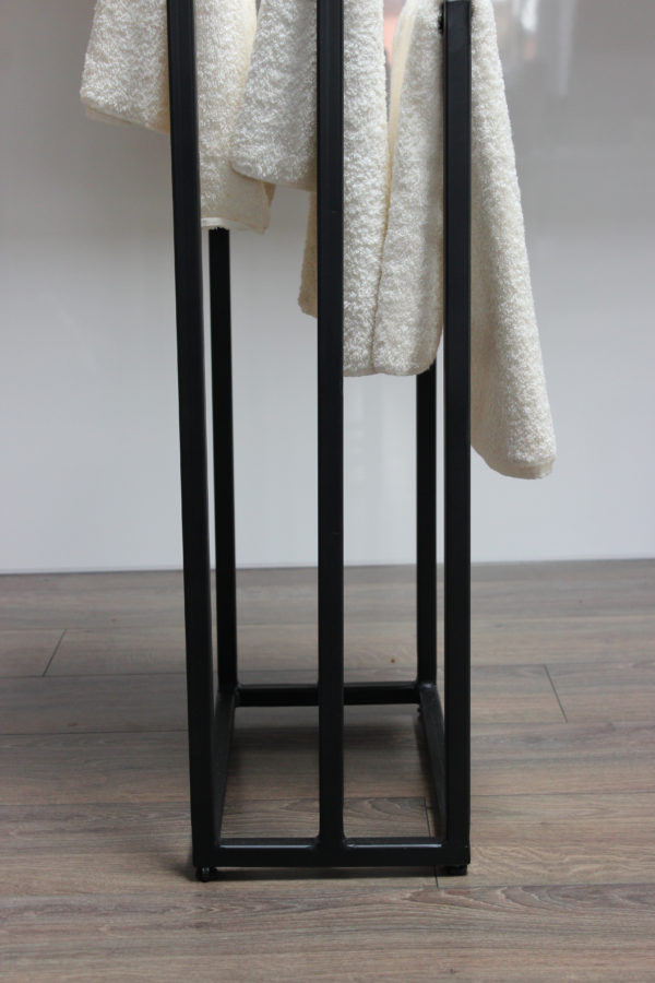 Najwyższa jakość użytych materiałów gwarantuje długie i bezpieczne użytkowanie wieszaka  Wolnostojący wieszak, może być ustawiony w dowolnym miejscu bez używania narzędzi. Jest to przewaga nad wieszakami trwale montowanymi na ścianie. Prostota i elegancja  to najlepszy wybór przy wyposażeniu funkcjonalnej i modnej łazienki.